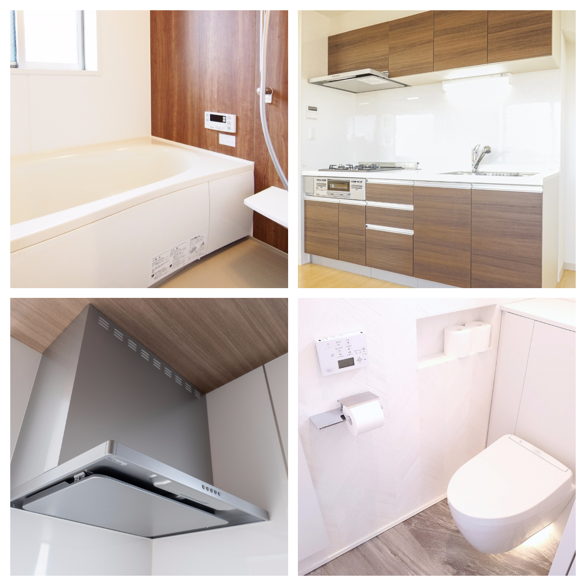 キッチン、レンジフード、トイレ、洗面台、バスルームからお好きな3点をお選び頂けます。
